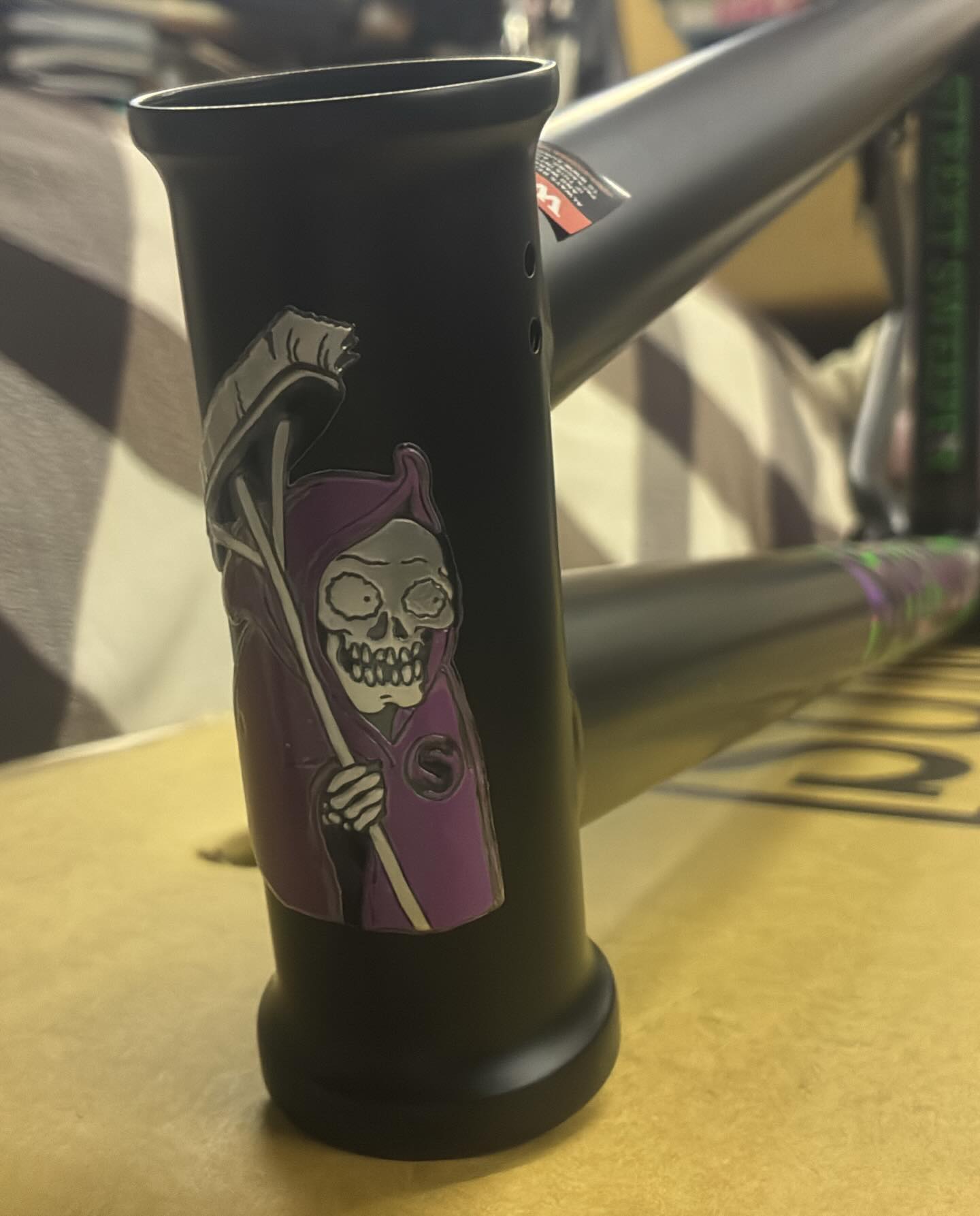 にパープルとグリーンの炎がデザインされていて、