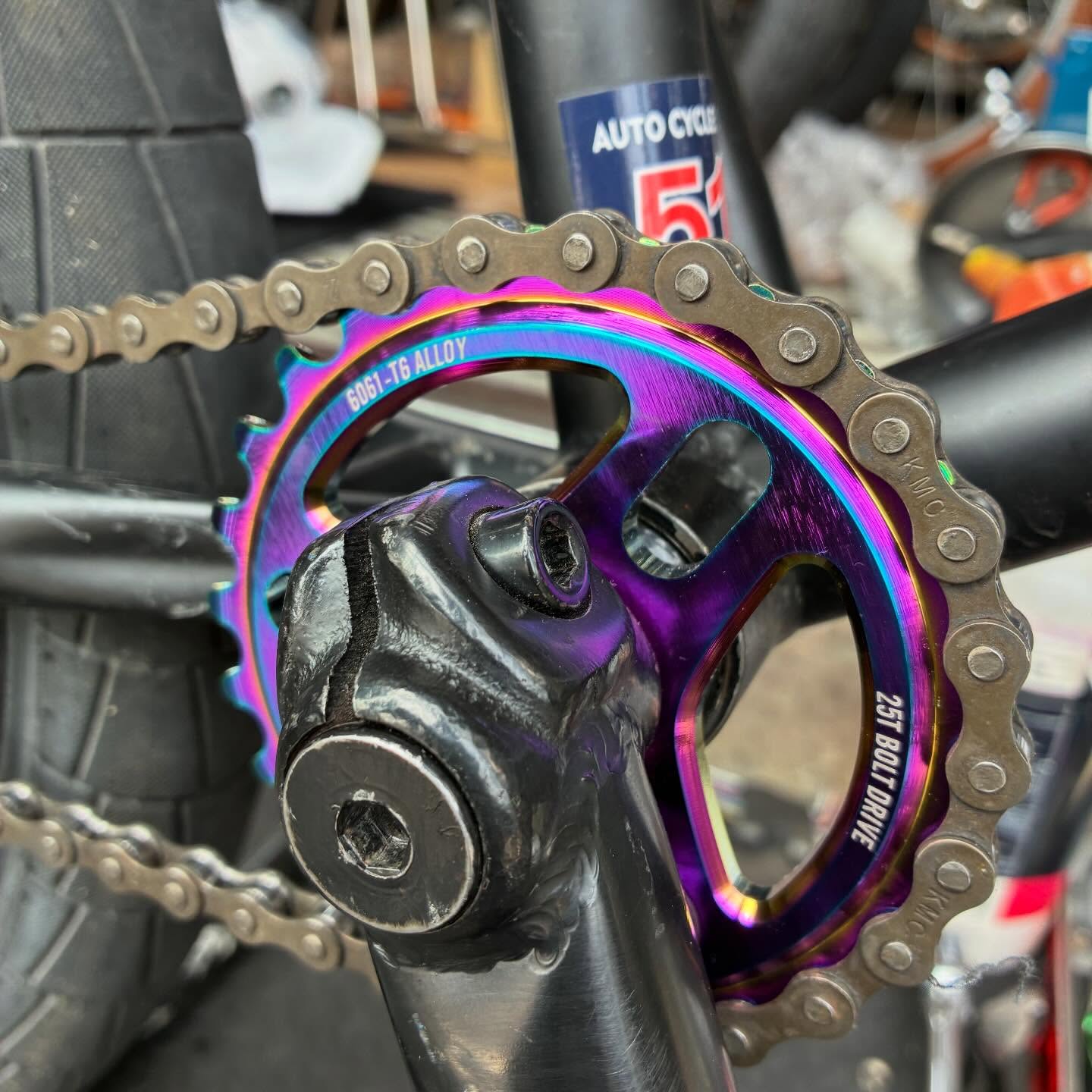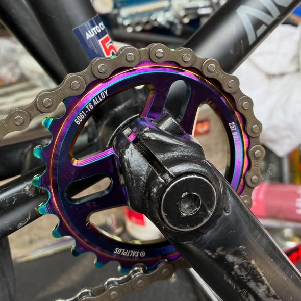 今回はスプロケットを【SALT】のOilSlickカラーに